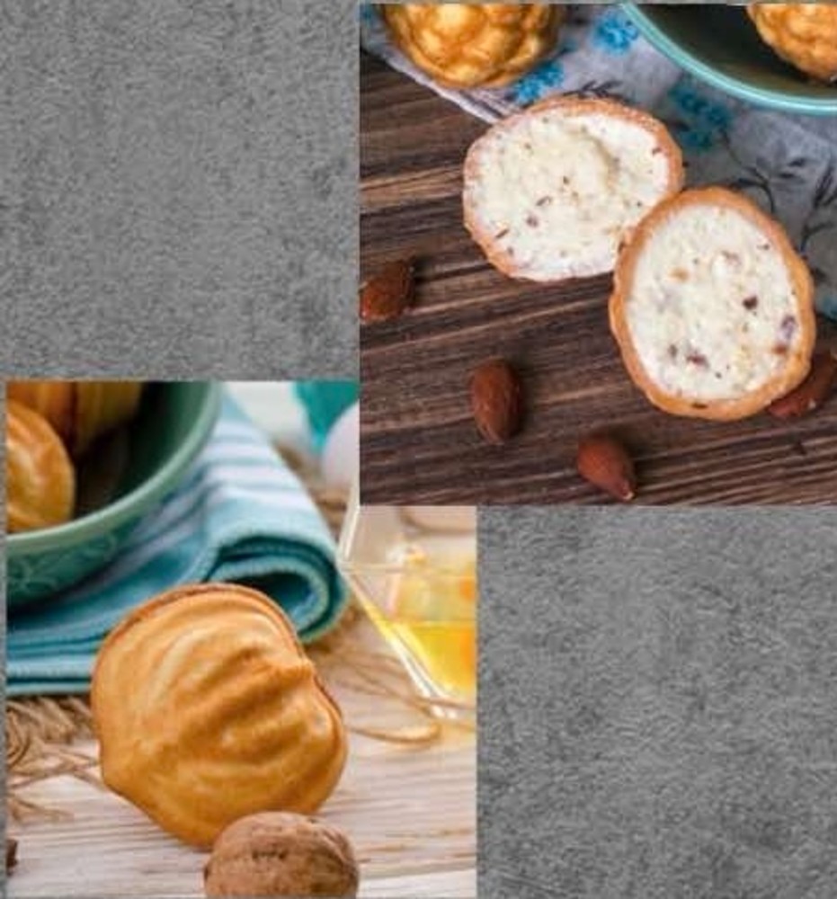 Склад: Яйця, борошно, масло вершкове, варене згущене молоко, ванільний цукор, сіль, крохмаль кукурудзяний, горіх грецький/горіх кокосовий та мигдальний